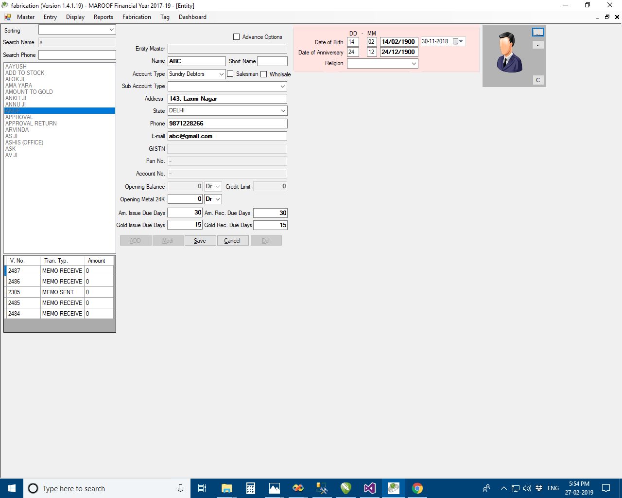 l Entity (Customer Detail CRM)
